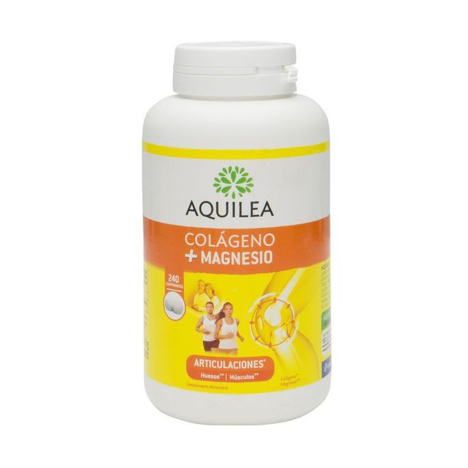 Aquilea Colágeno+Magnesio, contiene Colágeno hidrolizado una proteína que se encuentra naturalmente en los cartílagos, huesos y piel,. Las proteínas contribuyen al mantenimiento de huesos y músculos en condiciones normales y Magnesio, un mineral esencial para el funcionamiento de los músculos y el mantenimiento de los huesos, además de ayudar a reducir el cansancio y la fatiga.