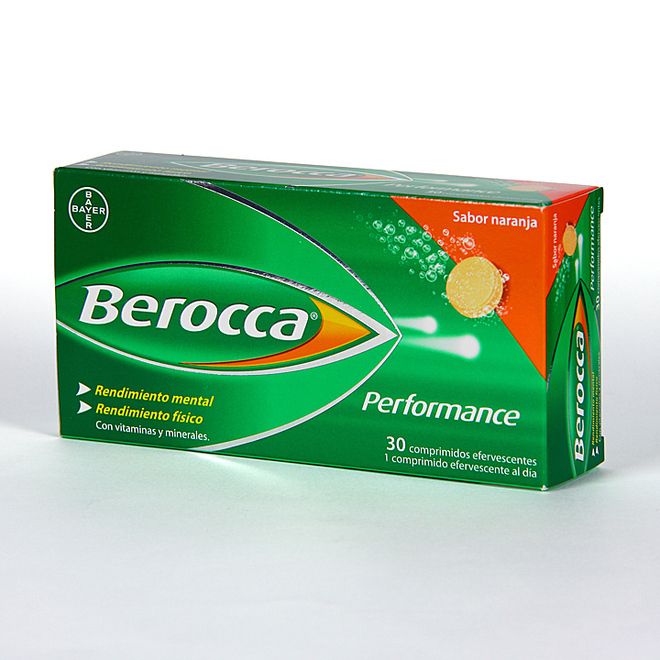 Berocca® Performance Naranja efervescente 30comp es un complemento alimenticio en comprimidos efervescentes con sabor naranja. Este suplemento multivitaminnico contribuyen en el rendimiento físico y mental, gracias a su elevada concentración de nutrientes esenciales y vitaminas del grupo B y C, ambas imprescindibles para el correcto funcionamiento del sistema nervioso. Además, fortalecen el sistema óseo gracias al calcio, regulan el tono muscular debido al magnesio y contienen zinc, que contribuye a la función cognitiva normal.
