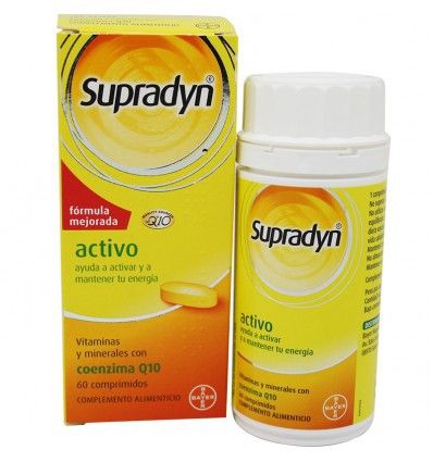 Coenzima Q10. Vitaminas del grupo B que contribuyen al metabolismo energético normal. Vitaminas C, E y zinc y selenio que protegen a las células frente al daño oxidativo. Supradyn® Activo no contiene ninguna sustancia excitante, no produce insomnio, ni interfiere en la conciliación del sueño.