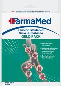 HIELO INSTANTÁNEO. Esta referencia sustituye la aplicación de hielo, consiguiendo un rápido enfriamiento de la zona afectada, indicado en el caso de golpes, la aparición de hinchazón, hematomas y aliviando el dolor. Contiene 1 Bolsa de un solo uso.
